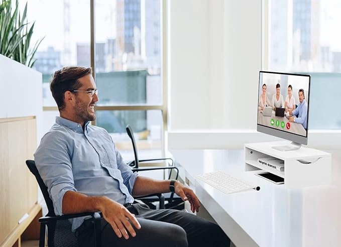 - Save Your Space: Get rid of the messy desks! 2-Tier monitor risers provide more storage space to keep your workstation organized and tidy. It can store many office supplies such as books, notebooks, earphones, power banks, paper, etc.