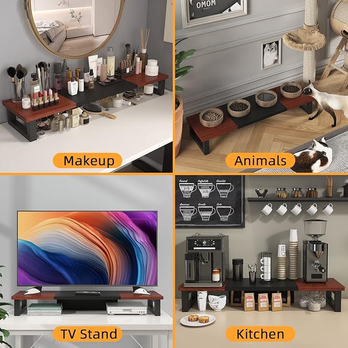 - 【Multifunctional Monitor Riser 】The monitor stand has powerful storage function of keeping the table clean.It can be used as a monitor stand riser, printer stand, laptop riser, or a TV stand, makeup, animals. Extra storage space underneath organize your office supplies.