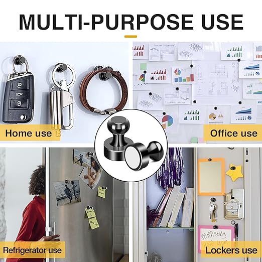 - 【Antirust】 - Push pin magnets are made of neodymium material and high quality stainless steel metal construction, our rare earth magnets apply three layers of electroplating(Nickel-Copper-Nickel), provide rust resistant protection and look shiny, greatly increase the longevity of the heavy duty refrigerator magnets.