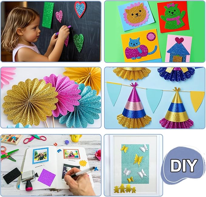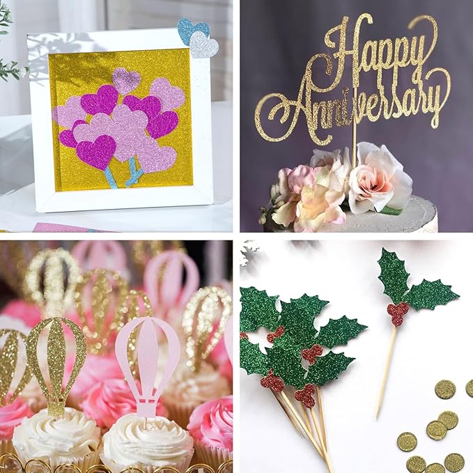 - Perfect for Arts and Crafts Projects - The Glitter for crafts is covered with brightly colored glitter that shimmers and glitters, making it great for cupcake toppers, gorgeous greeting cards, scrapbooking, birthday banners, gift wrapping for Mother's Day cards, Valentine's Day cards, etc