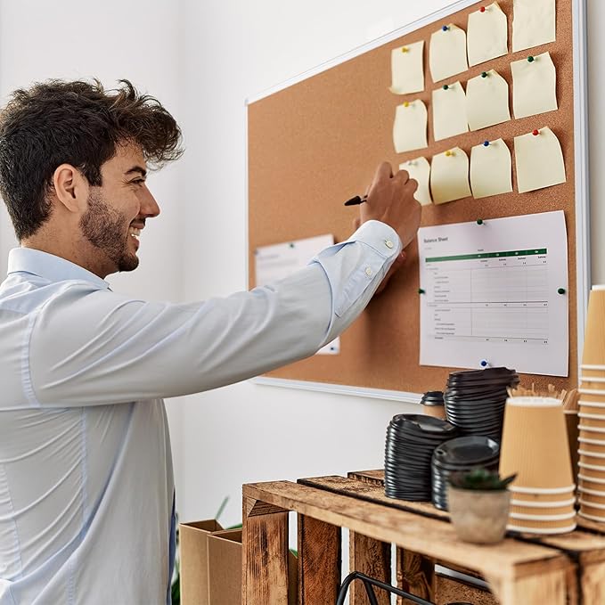 - Light Weight: 46 inch cork board with 15 push pins, surrounded by an anti-scratch satin and robust silver aluminum frame, covered with four ABS plastic corners, lightweight and sturdy, guaranteed not to warp