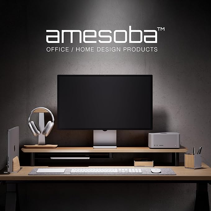 - Ideal for Apple & PC Setups: Designed with Apple users in mind, this stand fits seamlessly into any Mac-based workstation. It perfectly supports your iMac or MacBook, complementing the Apple aesthetic for a cohesive, professional vibe. The stylish wood finish and slim profile also pair well with PC monitors and accessories, adding sophistication to any setup.