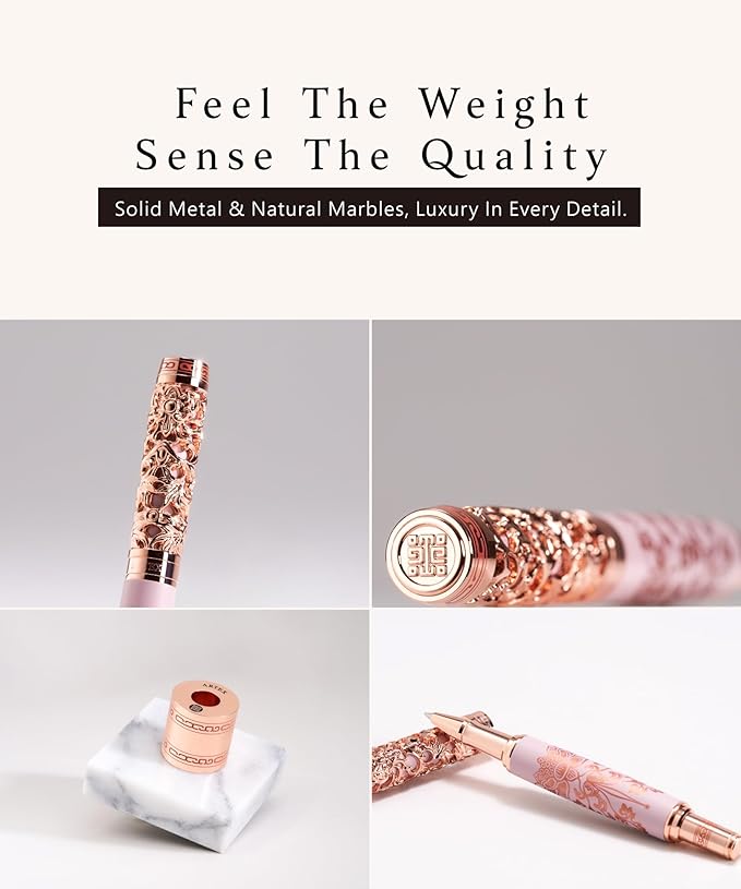 Executive Rollerball Pen Sets With Stand - Museum Art Collections - Crafting Timeless Beauty - Luxury Pen Gift & Office Desk Decor, German SCHMIDT refill, Solid Metal & Marble Texture