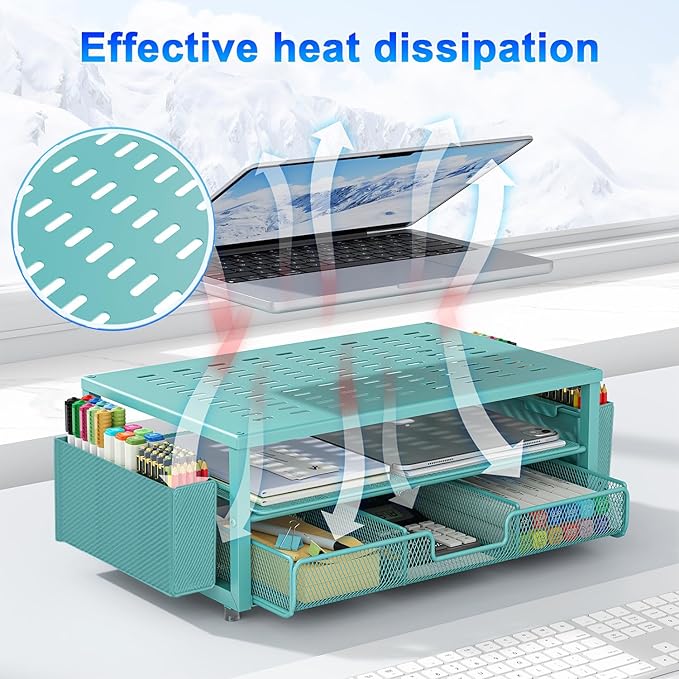 - 【Improved Work Efficiency】: The monitor riser comes with a sliding drawer and two pen holders. It accommodates various office desk items, saving space. It helps you quickly identify the contents of each compartment, doubling your work speed.
