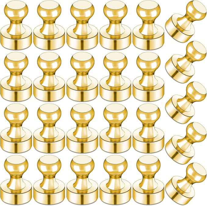 LOVIMAG Refrigerator Magnets, Fridge Magnets, Strong Whiteboard Magnets, Gold 25 Pcs Magnetic Push Pins, Strong Metal Magnets for Fridge, Whiteboard, Office, Classroom, Map, Kitchen