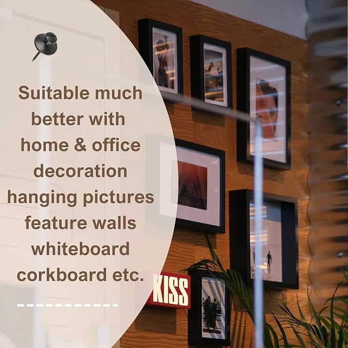 - Secure Hold: Despite their compact size, these hanging nails and thumb tacks boast impressive strength, securely supporting up to five pounds each. Perfect for picture frames, tapestry hangers, and other wall decorations, you can trust these wall tacks for hanging to keep your items firmly in place.