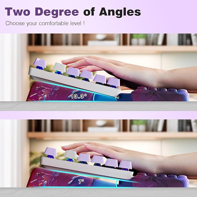 - Works with most keyboards and features two angle settings - adjust the tilt to match how you type for all-day comfort.