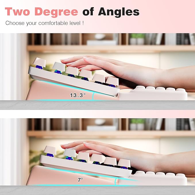 - Works with most keyboards and features two angle settings - adjust the tilt to match how you type for all-day comfort.