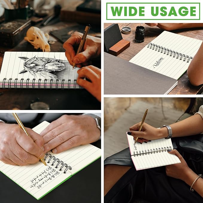 - Widely Applicable: These small spiral notepads perfect for business, conference, travelers notebooks, composition, schoolwork, for keeping a travelogue, a daily journal, planning, note-taking and anything important,and you can also use them for creative scrapbooking or handwriting books to inspire your creativity and imagination