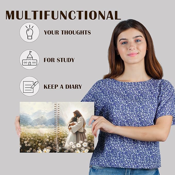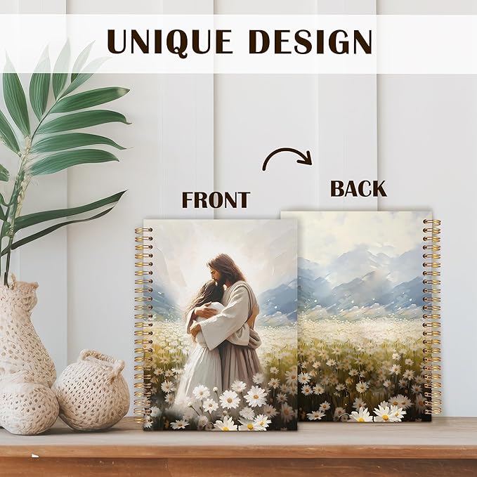 Qabliqo Jesus Christian Spiral Notebooks, Christian Gift Journal for Women, Daisy Flower Field Jesus Hugging Journals for Woman, Religious Notebook for Note Taking, 5.5x8.3 Inch