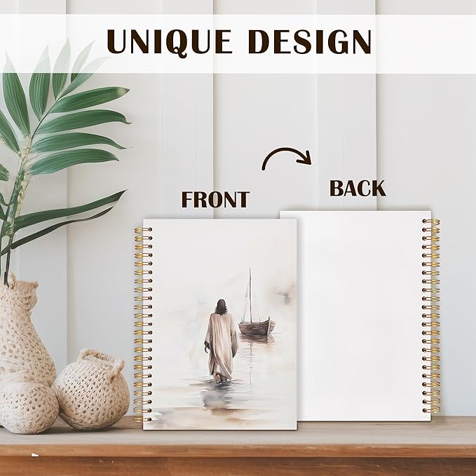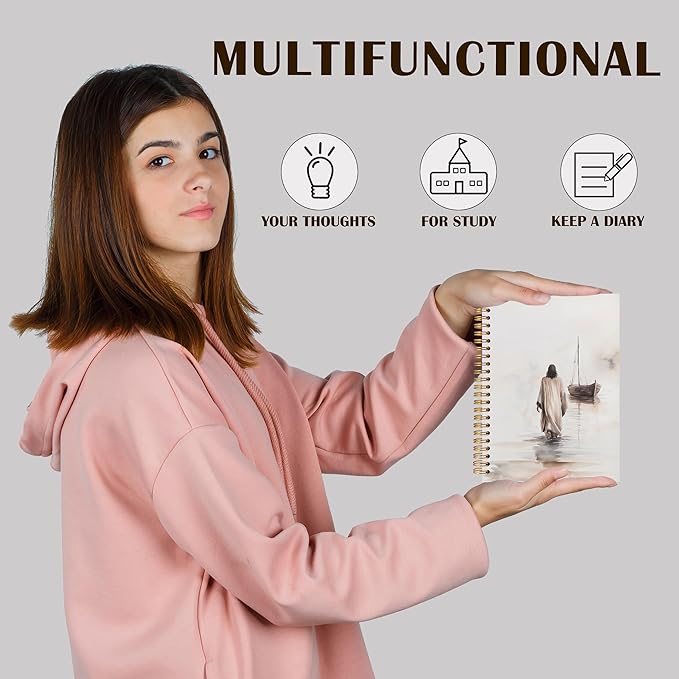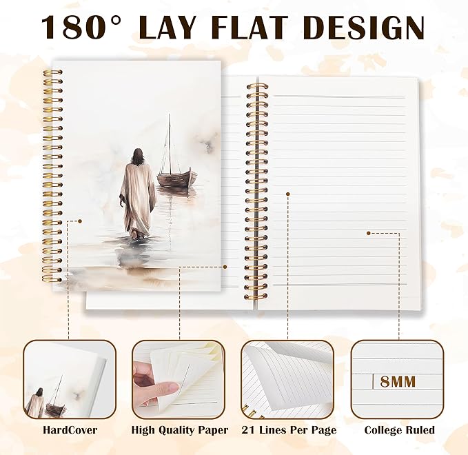 Qabliqo Watercolor Christian Jesus Spiral Notebooks, Jesus Walking on Water Journals for Writing, Prayer Journal, Christian Gifts for Women Men, Religious Notebook for Note Taking, 5.5x8.3 Inch
