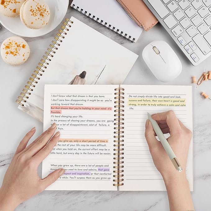 - Size and Construction: Measures approximately 5.5 x 8.3 inches. Comes with a hardcover and spiral binding, making it easy to open flat and write comfortably.