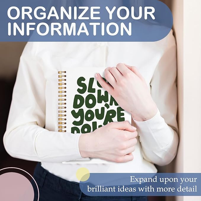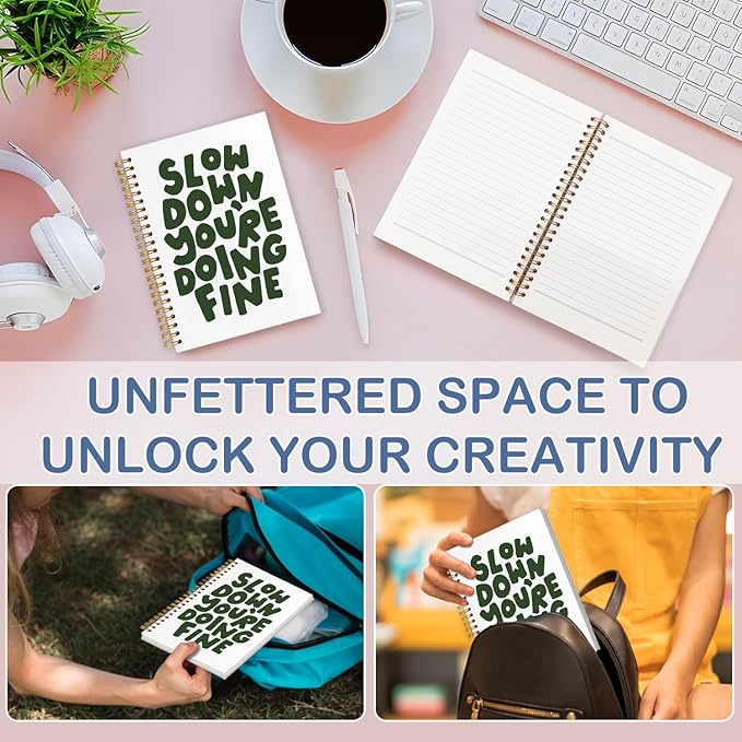 SNNDER Mental Health Inspirational Spiral Notebooks, Motivational Quote Journals for Writing, Slow Down You're Doing Fine Notebook for Note Taking, Positive Affirmation Gifts for Women, 5.5x8.3 Inch