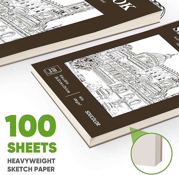 Soucolor 8" x 10" Blank Spiral Notebook| 100 Sheets 68lb/100gsm| Classroom Must Haves Supplies, Back to School Supplies for Teachers & Students| Small Sketchbook Drawing Paper for Kids and Adults