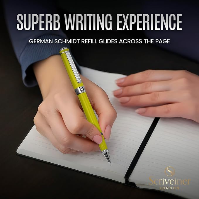 Scriveiner Chartreuse Rollerball Pen - Stunning Luxury Pen With Chrome Finish, Schmidt Ink Refill, Best Roller Ball Gift Set for Men & Women, Professional, Executive Office, Nice Pens