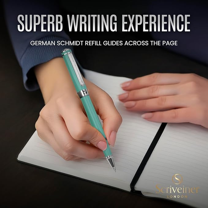 Scriveiner Mint Green Rollerball Pen - Stunning Luxury Pen With Chrome Finish, Schmidt Ink Refill, Best Roller Ball Gift Set for Men & Women, Professional, Executive Office, Nice Pens
